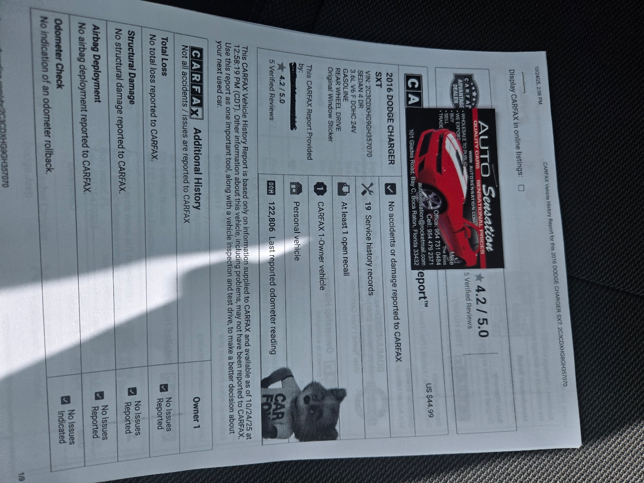 ONE OWNER,CLEAN CARFAX.COMPLIMENTARY 3 MONTH 3000 MILE LIMITED WARRANTY AND CARFAX,ASK FOR DETAILS ON THIS PROMOTION,FULLY SERVICED,LIKE NEW IN AND OUT,FACTORY SUB WOOFER AAND BEATS AUDIO,RALLYE EDITION,ALLOY WHEELS,NAV,BACK UP CAMERA,BLUETOOTH,LANE VIEW MONITORING!COME SEE THIS AMAZING CHARGER!AUTO SENSATION,954-731-0484/ 101 GLADES ROAD, BAY C, BOCA RATON FLORIDA 33432,WE HAVE NEW CAR DEALER TRADES. WE WHOLESALE TO THE PUBLIC. NO CREDIT CHECK, BAD CREDIT, NO CREDIT, FIRST TIME BUYERS, ESTABLISH CREDIT, RE ESTABLISH CREDIT, NO INTEREST LOANS ON BY HERE PAY HERE,BANK AND SPECIAL FINANCING AVAILABLE, OVER 15,000 VEHICLES SOLD. FAMILY OWNED AND OPERATED FOR OVER 25 YEARS! HERE AT AUTO SENSATION YOU GET A QUALITY VEHICLE AT A SENSATIONAL PRICE....COME JOIN THE AUTO SENSATION FAMILY! DON'T SEE THE CAR YOU LIKE ASK US ABOUT LOCATING IT FOR YOU...WE SHIP ANYWHEREADDLE INTERIOR,GLASS ROOF,SPORT WHEELS,LOADED,ADULT OWNED,NON SMOKER,WEATHER TACH MATS, CARPETS PERFECT,FULLY SERVICED,WARRANTY INCLUDED ,DRIVES 100%,A MUST SEE,